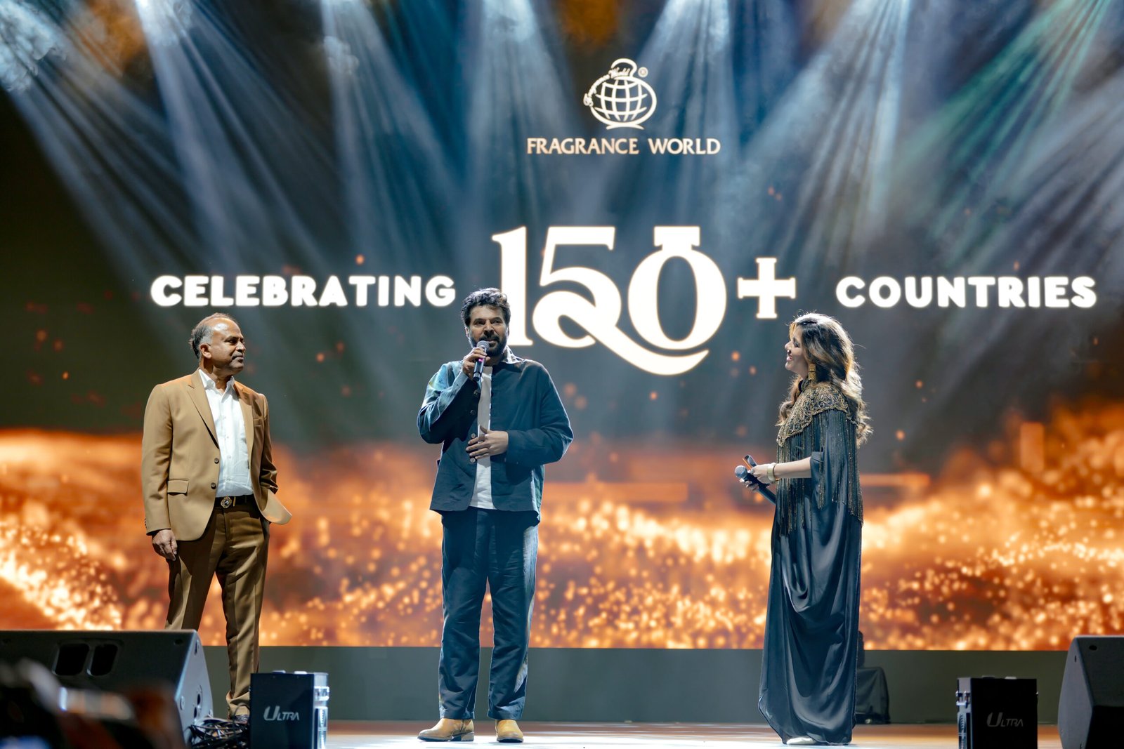 The celebrations commenced with a spectacular drone show that unveiled a special logo commemorating Fragrance World’s expansion across 150 countries. The aerial display narrated the brand’s history and featured the digital signature of Chairman and Founder Poland Moosa. The unveiling took place in the presence of acclaimed Indian film actor Mammootty, CEO P. V. Salam, Joint CEO P. V. Safeer, and Mr. Labeeb.