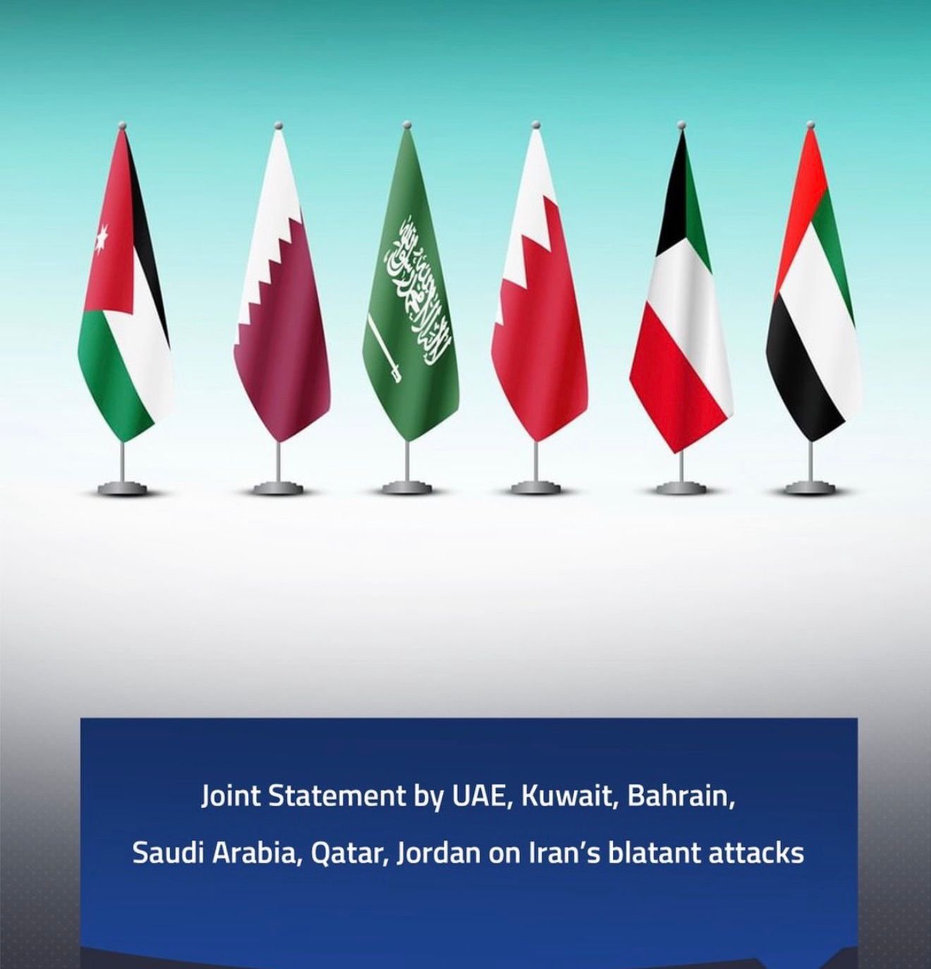 Abu Dhabi: The United Arab Emirates, Kuwait, Bahrain, Saudi Arabia, Qatar, and Jordan have strongly condemned what they described as “blatant Iranian attacks,” calling them a serious violation of sovereignty, territorial integrity, and international law.
