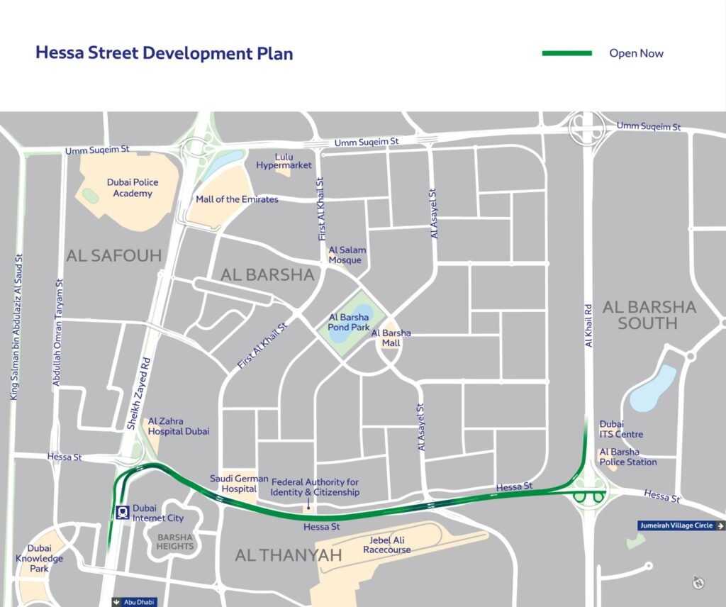 The Hessa Street Development Project serves key areas including Jumeirah Village Circle, Dubai Science Park, Al Barsha South, Jumeirah Lakes Towers, and Emirates Hills, reinforcing Dubai’s commitment to building a seamless, efficient, and future-ready transport network.