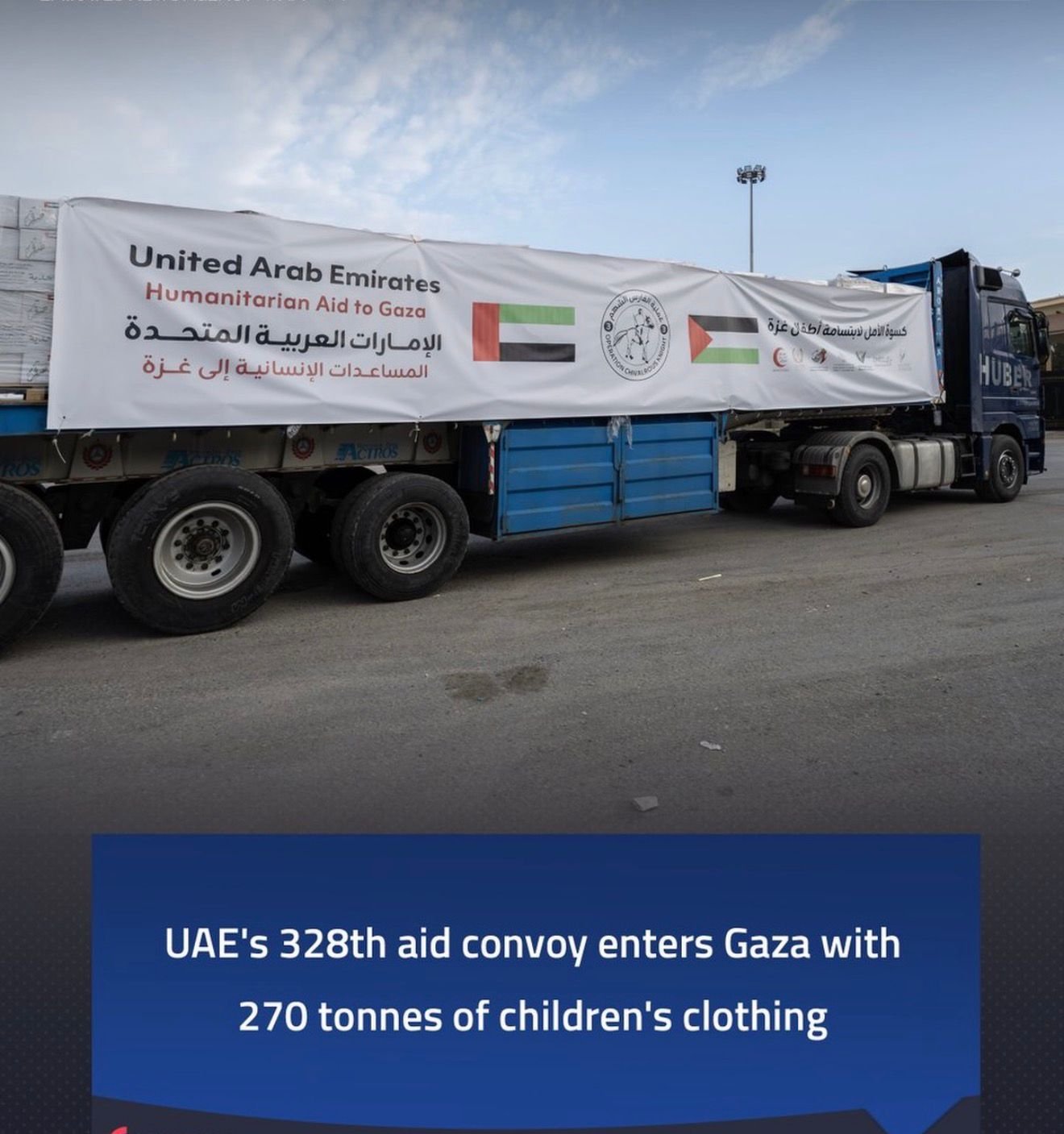 UAE Sends 328th Aid Convoy to Gaza with 270 Tonnes of Children’s Clothing